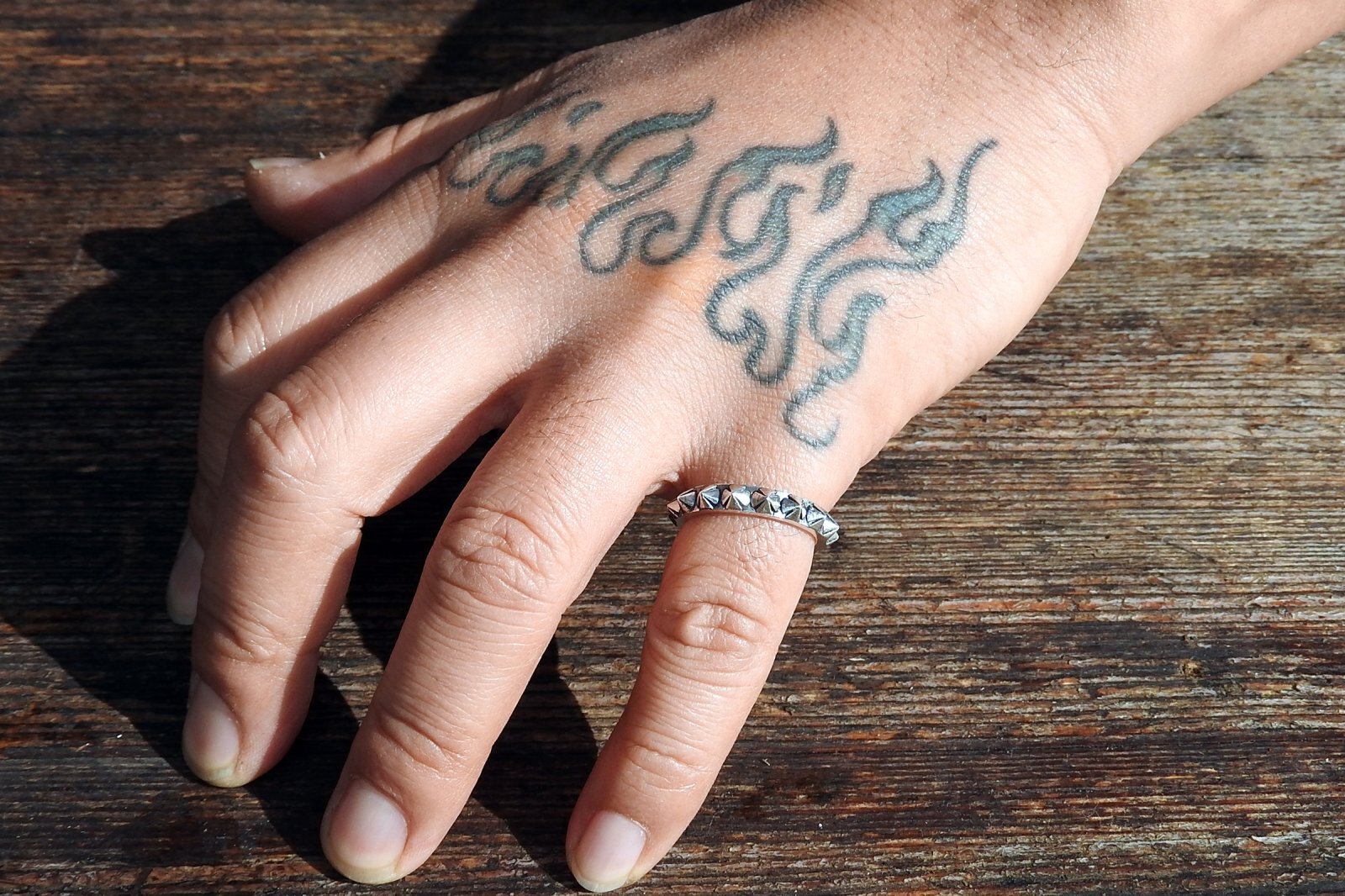 円錐型のアイアンクロスがぐるっと一周したリング