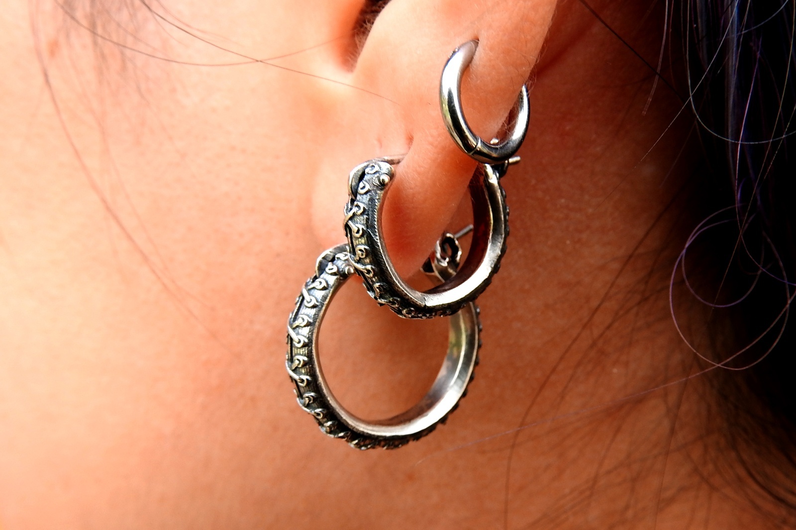 キャッチのいらないフープタイプのピアス