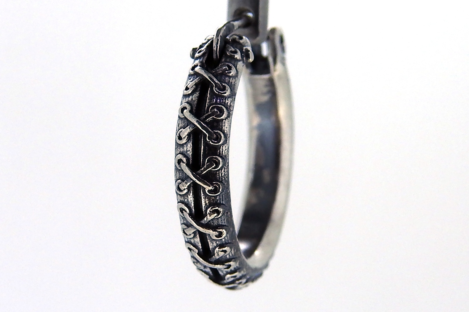 縫目が施されたデザインのピアス